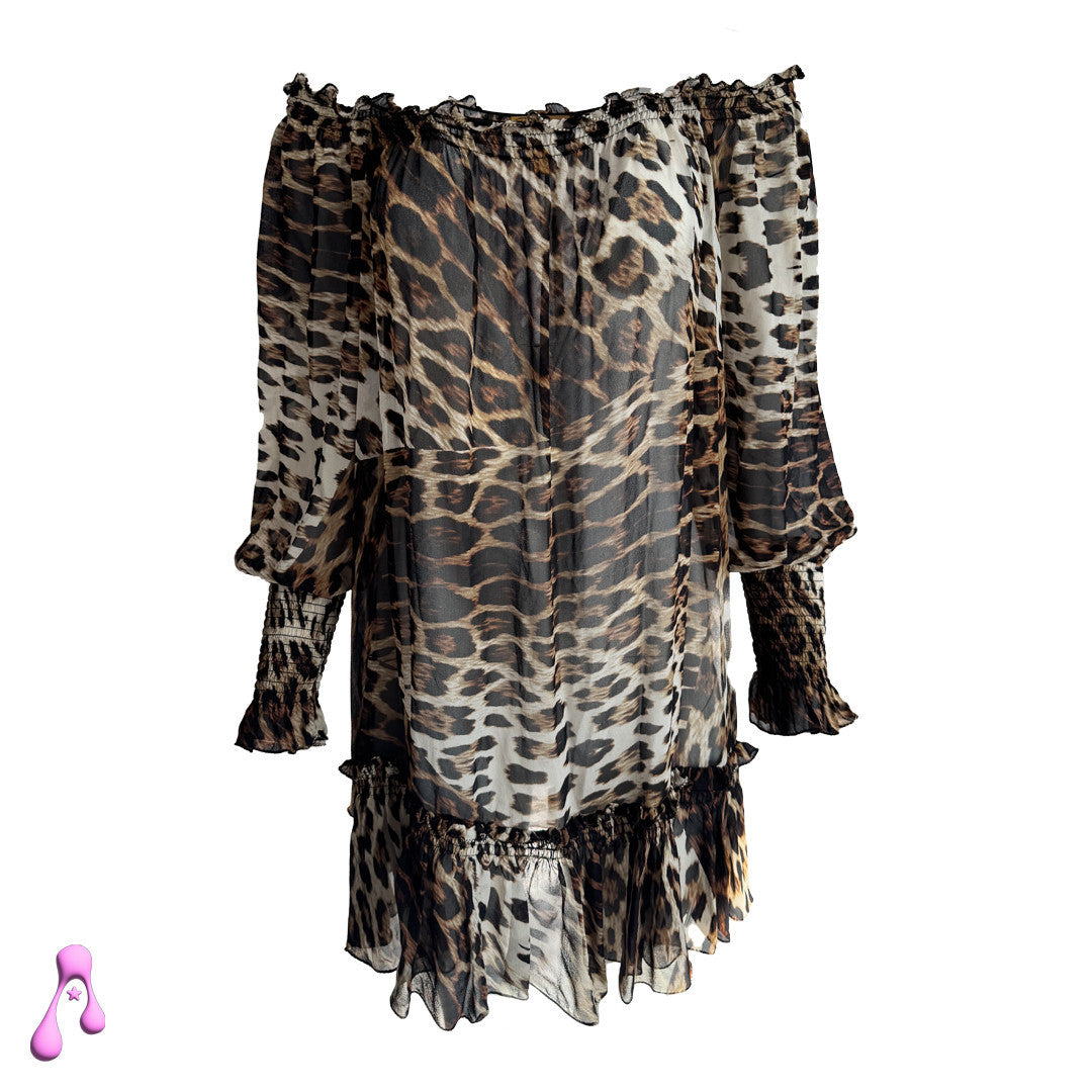 Roberto Cavalli x H&M Silk Boho Leopard Shift Animal Off Shoulder Dress