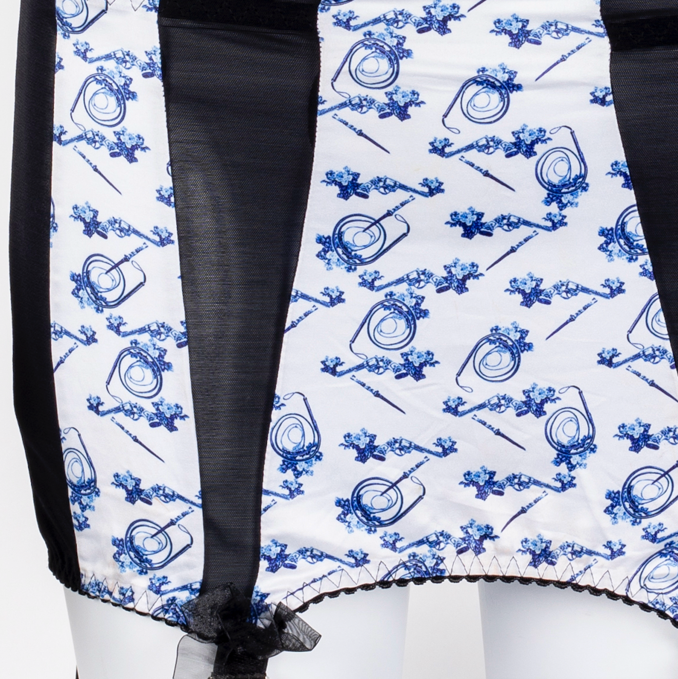Girdle Whip, Gun, Knife & Floral Cobalt Blue Print