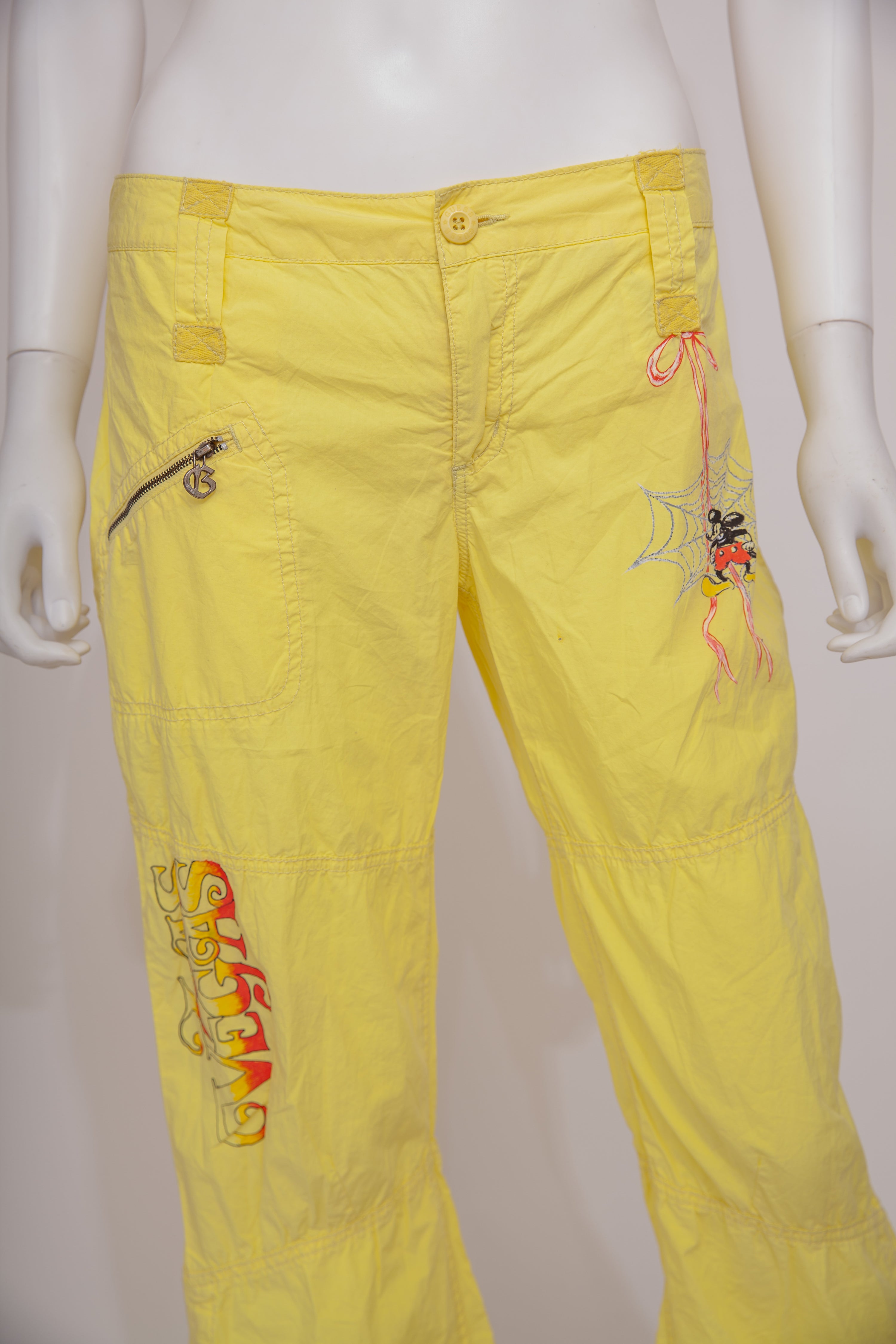 Yellow Three Quater Length Trousers with Hand Drawn Details