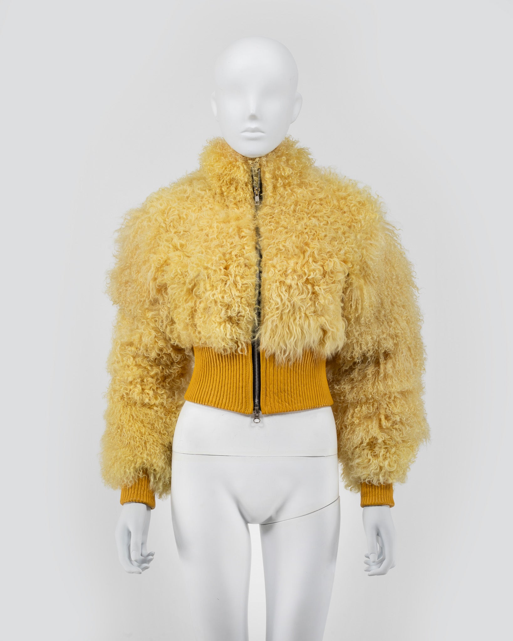 Sinead Gorey Yellow Sheep Fur & Leather Shearling Cropped Jacket